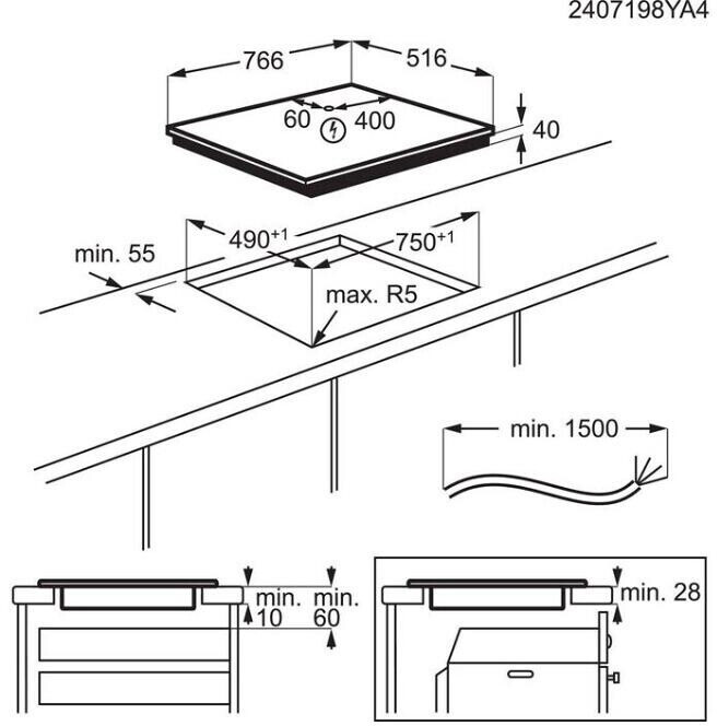 | Leistung der 4. Kochzone | 1,8/2,8 kW |